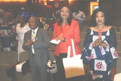 Nigerian Government Ministers from the Embassy, Mr Akingbolasan - left, Mrs Okeke - center and NCWS USA President Lady Jane-Frances Echeozo at the City of Aurora Colorado reception of Nigerian Ambassador to the US Prof. Adefuye. The Ministers accompanied the Ambassador to the NCWS USA Convention of 2011.